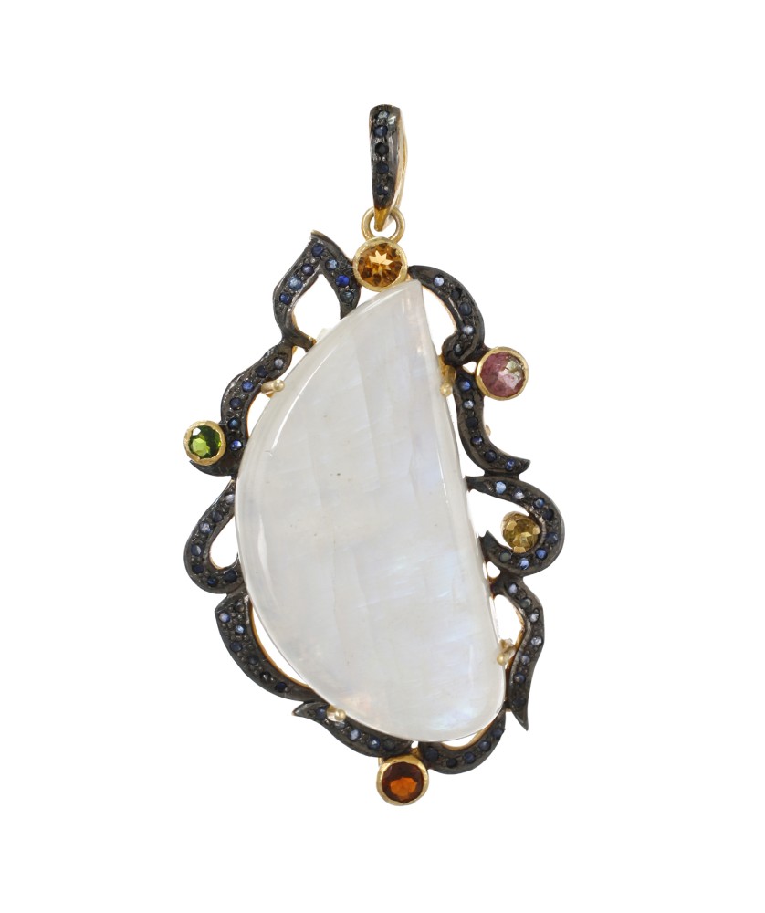 925 Sterling silver Rainbow Moonstone & Tourmaline Pendant