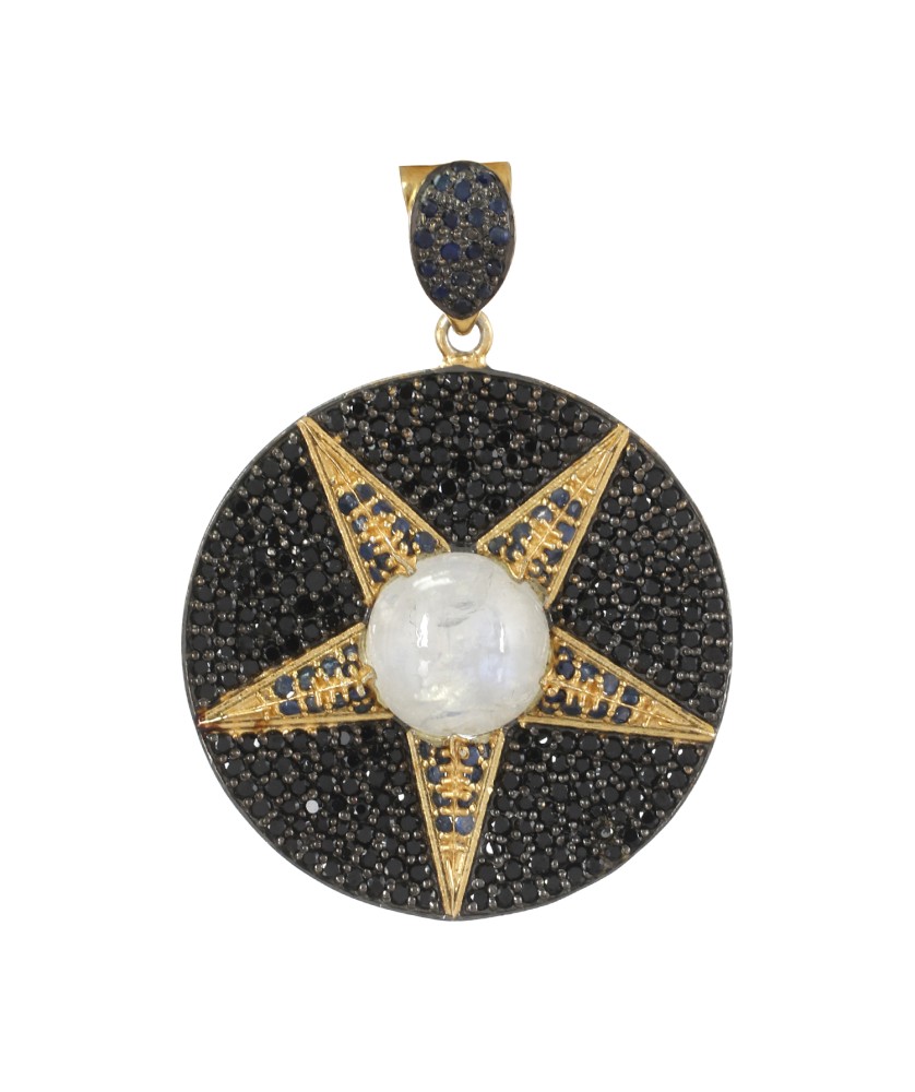 925 Sterling silver Rainbow Moonstone & Black Spinnel Pendant